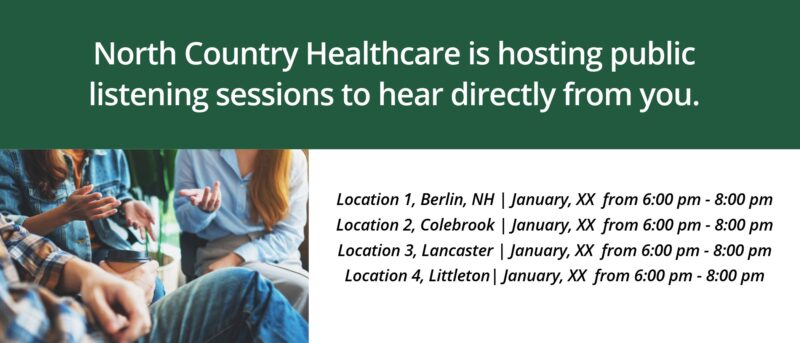 North Country Healthcare (NCH) will be holding listening sessions, facilitated by an independent third party to highlight the work we do to ensure that our patients receive excellent healthcare close to home, as well as provide our patients, community members and care partners the opportunities to share their perspectives on health priorities, barriers to care and opportunities for improvement.